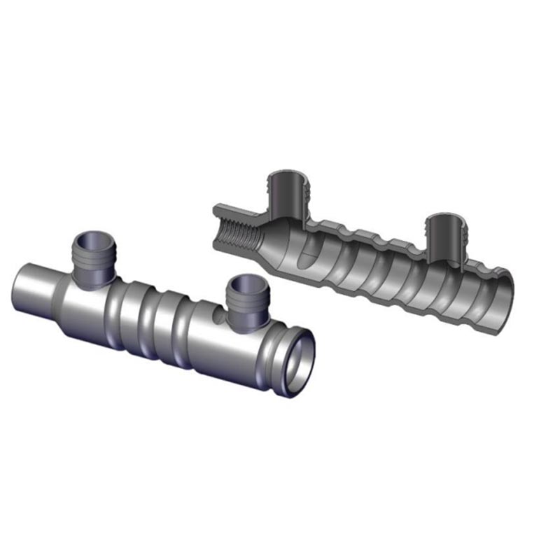 на оба краја, погодан за двосмерне чеоне спојеве арматуре; полуињектирани рукави имају навојни спој на једном